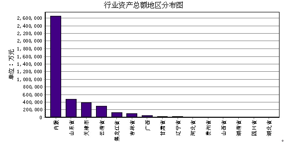 從行業(yè)資產(chǎn)地區(qū)分布情況看,排列前三位的分別是內(nèi)蒙古、山東省、天津市,與去年同期相比,資產(chǎn)總額增幅較大的是四川省、貴州省、山西省。