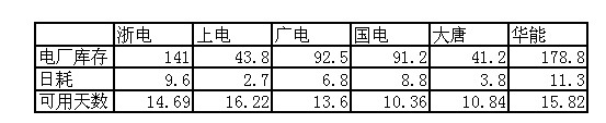 2009年11月06日電廠庫存及日耗情況統(tǒng)計