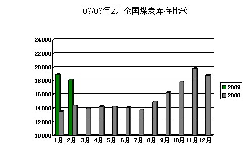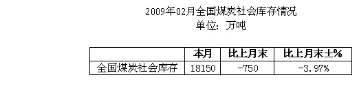 2009年2月全國煤炭社會(huì)庫存統(tǒng)計(jì)