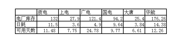 2009年12月2日直供電廠煤炭庫存統(tǒng)計(jì)