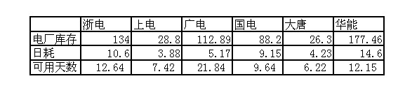 2009年12月5日直供電廠煤炭庫存統(tǒng)計