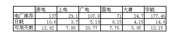 2009年12月7日直供電廠煤炭庫(kù)存統(tǒng)計(jì)
