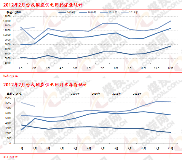 | 2012年02月全國重點發(fā)電企業(yè)耗煤/庫存情況 | |||||||||||