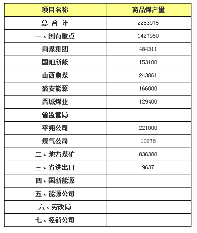 2013年01月01日山西省商品煤產(chǎn)量情況